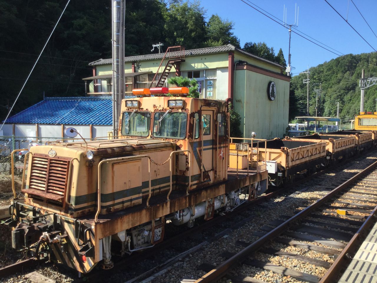 2号線と保線作業用側線、近年動かしていないためか保線作業車は錆が目立っている。